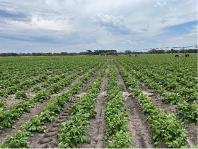 Scott Merrett from Legacy Farm in Penola, South Australia, worked with Nutrien Ag Solutions sales agronomist, Henry Smith, on a trial on 10 hectares of Innovator potatoes in December 2023. Utrisha N was applied about two months after planting, at approximately 50% row closure, at a rate of 333g/ha.