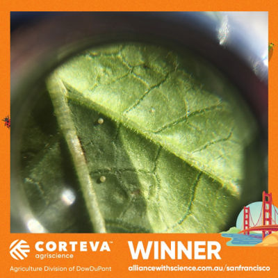 The photo Courtney Piesse submitted was a close-up image of a parasitised aphid on a potato leaf after an application of Transform® Isoclast active insecticide.