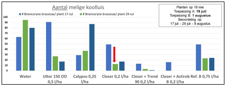 Ook op melige koolluis presteert CLOSER bijzonder goed (Rumbeke, 2019) :