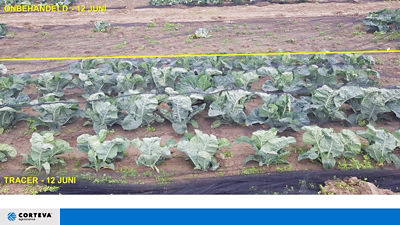 In 2019 kenden we opnieuw een zware aantasting/druk van de koolvlieg, getuige hiervan het onbehandelde object waarin er een volledige wegval van alle koolplanten was. Echter, een traybakbehandeling met spinosad geeft duidelijk de beste bescherming tegen koolvlieg bij de start, met meer dan 95% van de kolen die konden worden geoogst. Zowel uit proeven als uit praktijkervaring blijkt telkens opnieuw dat een toepassing van Spinosad op de tray minder wegval van planten geeft, maar ook een verhoging van het percentage verhandelbare kolen.