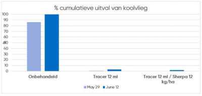 Toevoeging van SHERPA bij het planten zal een langere bescherming geven op het veld tegen koolvliegaantasting.