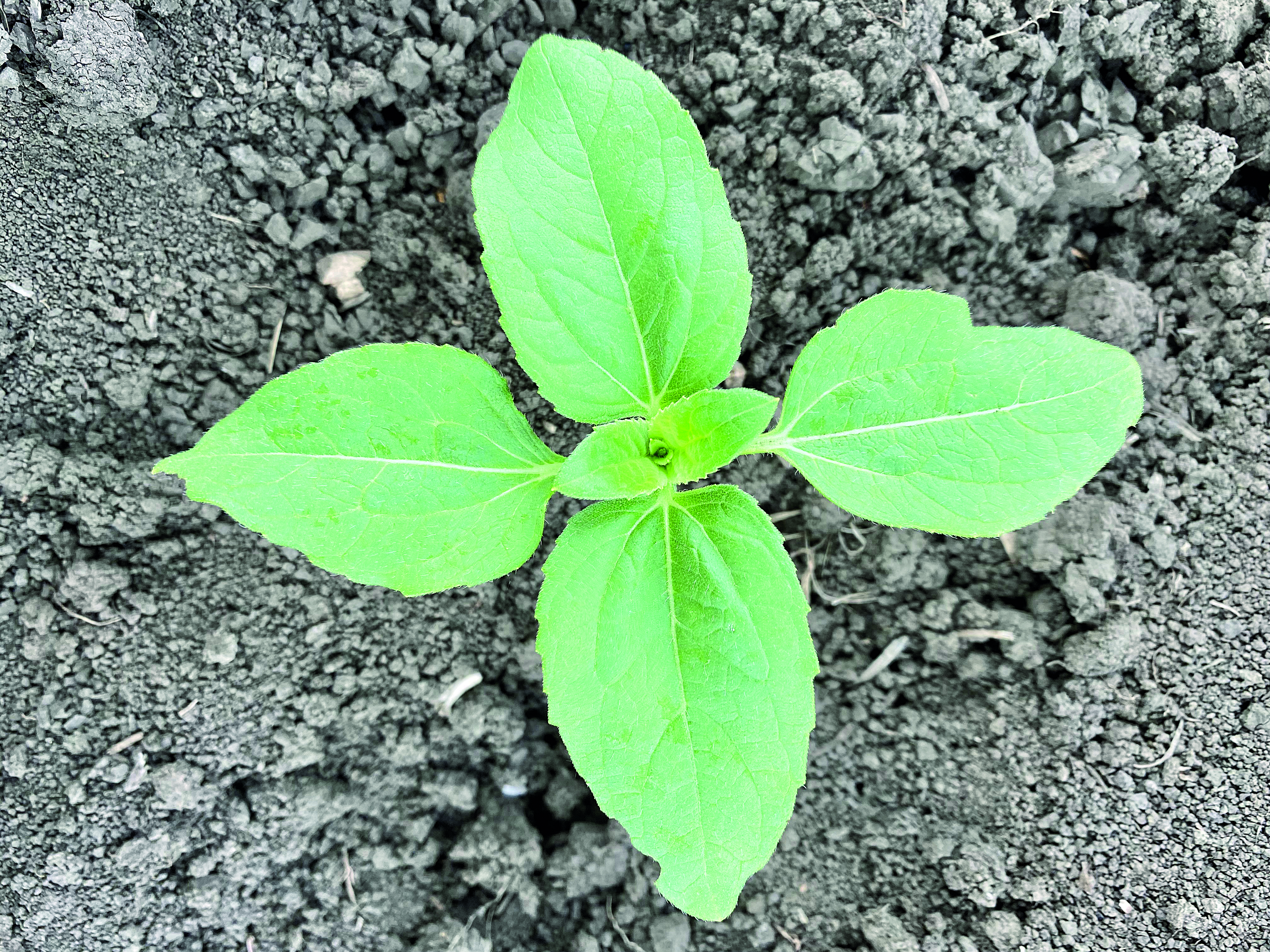 За сезон 2024 година внедряваме най-новият вегетационен хербицид ХЕЛИАНТЕКС СК с ново активно вещество (ARYLEX active) за контрол на важни проблемни широколистни плевели (амброзия, бяла куча лобода, абутилон, бутрак/свиница, див синап, див коноп, канадска злолетница и др.) при всички технологии на отглеждане на културата слънчоглед (конвенционален, ExpressSun®, Clearfield®, Clearfield® Plus, шарен, птичи, конфекшън, за хранителната индустрия). ХЕЛИАНТЕКС е хербицид със системно действие, нов различен механизъм на действие от досега използваните хербициди, който се абсорбира от листата и корените на плевелите, като хербицидният ефект е видим до няколко часа след приложение, който е изключително силен и характерен, и е без ограничения в сеитбооборота (защото се разгражда бързо в почвата до безвредни метаболити). ХЕЛИАНТЕКС контролира плевелите с изключително ниска доза на приложение от 4,5 мл/дка (която доза е равна на 0,3 грама активно вещество на декар третирана площ) + прилепител ВИВОЛТ 0,1%. ХЕЛИАНТЕКС се прилага при слънчогледа от фаза напълно развит 4-ти лист (ВВСН 14) до фаза бутонизация (ВВСН 50) – вижте приложената снимка долу за най-ранна фаза на приложение.