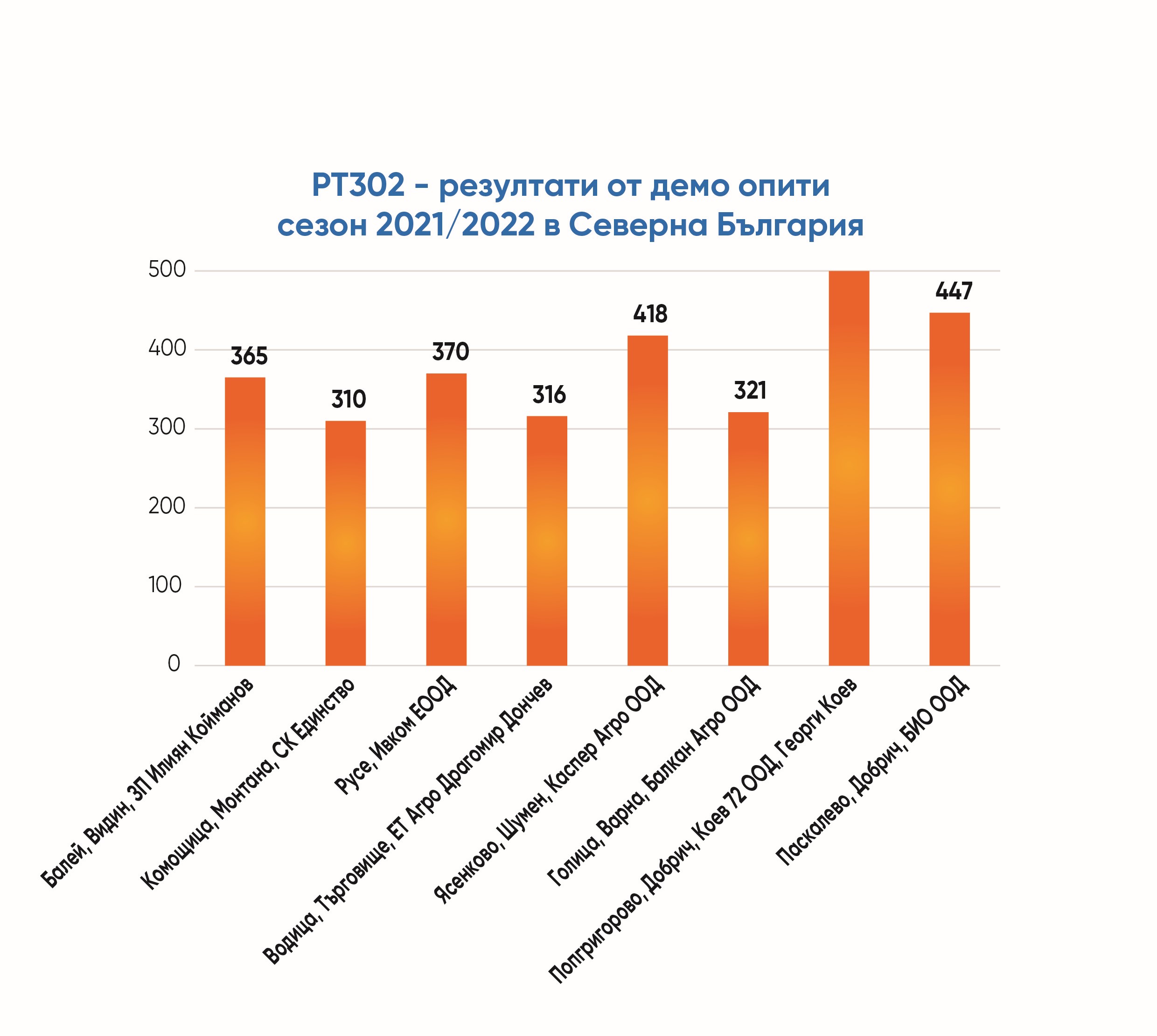 Вторият нов хибрид също е конвенционален – РТ302, средноранен, с много висок и стабилен добивен потенциал, широкоадаптивен, високо ниво на устойчивост на разпукване на шушулките, толерантен на болестта фома, с високо ниво на толерантност на ниски температури. С много добро представяне в официални опити в Германия последните три сезона и вече внедрен в практиката в Германия, Чехия и Полша с отлично представяне срещу най-добрите конкурентни хибриди.