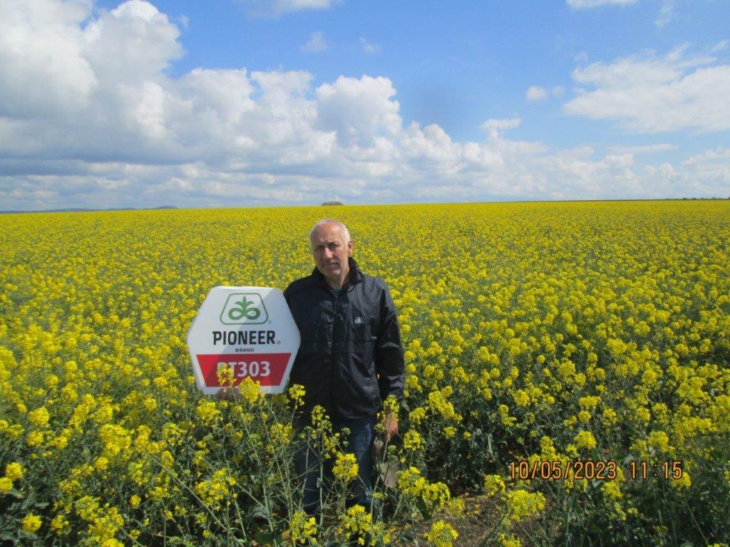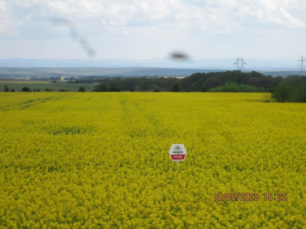 PT303 – първият конвенционален хибрид от новата линия Pioneer® Protector® Sclerotinia, с изключително високо ниво на толерантност на болестта Склеротиния, средноранен с много висок и стабилен добивен потенциал, адаптивен за отглеждане в цялата страна, с високо маслено съдържание (над 45%-46%), много висока толерантност на на болестта Склеротиния, разпукване на шушулките, на полягане, на студ и ниски температури, толерантен на TuYV вируса (официално сертифициран във Франция). РТ303 е най-отглежданияг хибрид на Corteva Agriscience в Европа и България за отминалия сезон. За сезон 2022-2023 година на производствени полета (от 400 дка до 3 000 дка) РТ303 даде добиви от 430 кг/дка до 580 кг/дка (в области Велико Търново, Видин и София), като победи едни от най-добрите стандарти в практиката до момента. В демо опити в цялата страна добивите се движеха в диапазаона от 310 до 500 кг/дка в Северна България и от 230 до 400 кг/дка в Южна България (резултатите може да получите от нашите регионални представители).