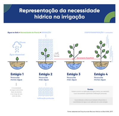 Cada cultura requer uma quantidade diferente de água e isso também vale para o tamanho da propriedade e a região em que ela está localizada. Além de variar entre as culturas, a quantidade de água também é diferente entre as fases do desenvolvimento das plantas.