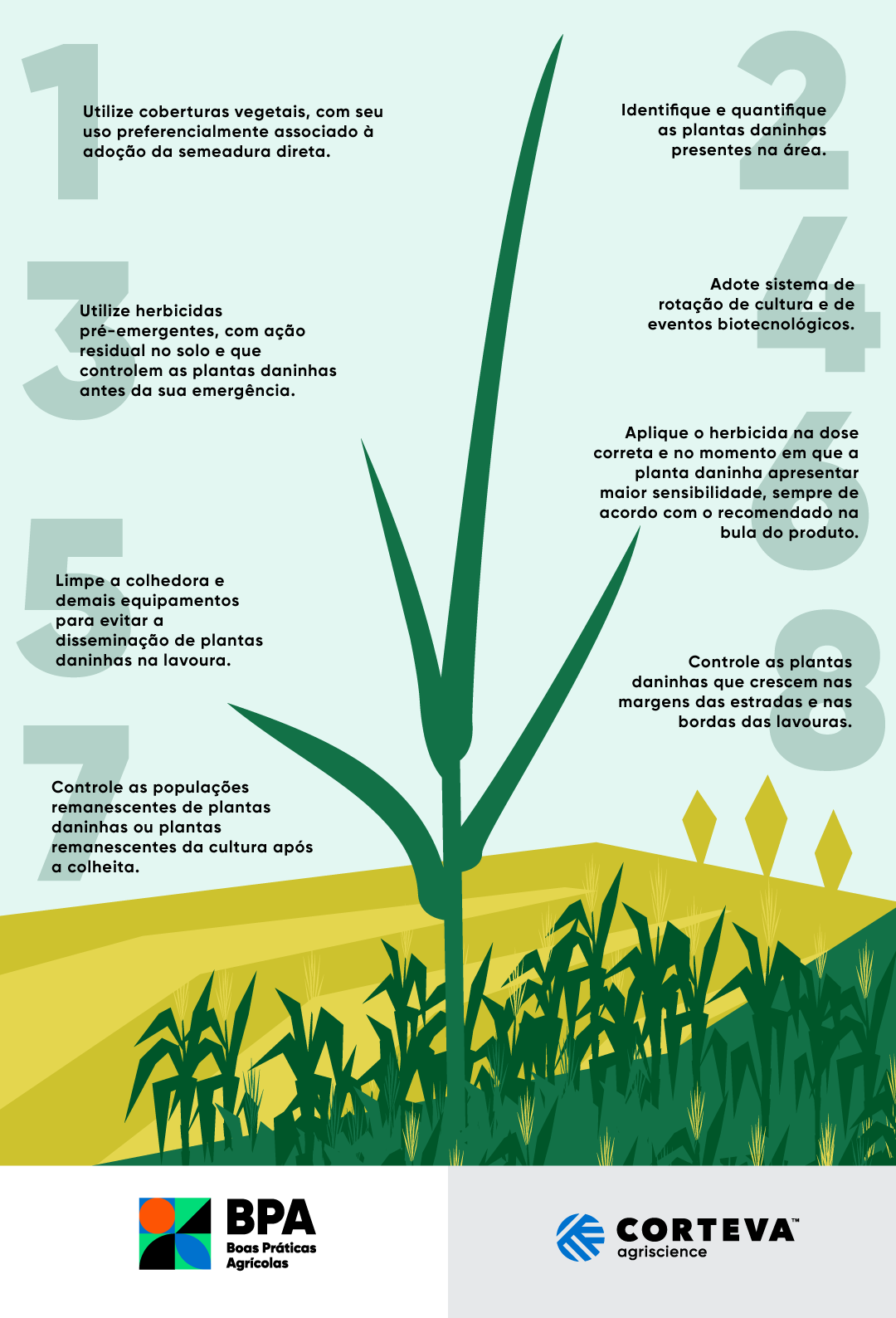 Na nossa Biblioteca Digital existem vários materiais informativos em que é possível se aprofundar sobre as questões que envolvem as plantas daninhas na lavoura. São vídeos, publicações, e-books e webinars gratuitos com orientações, recomendações e explicações sobre as adversidades que podem afetar a produtividade. Esse conteúdo está disponível, com acesso ilimitado a qualquer momento, pelo link: https://www.corteva.com.br/boas-praticas-agricolas/institucional/manejo-de-plantas-daninhas.html#t1