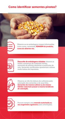 É considerado pirata todo e qualquer produto vegetal comercializado como “semente”, que não tenha sido produzido a partir de campos inscritos no MAPA e com integral cumprimento da legislação, ou seja, não possuem nenhum tipo de certificação ou garantia de procedência.