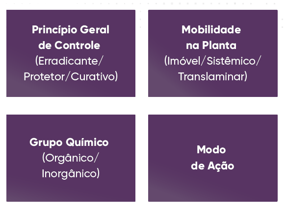 Os fungicidas podem ser classificados de diversas formas, as principais envolvem aspectos relacionados a: