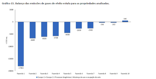 Por fim, o balanço das emissões de cada fazenda foi calculado com o uso da ferramenta GHG Protocol Agropecuário, criado pela World Resource Institute (WRI).