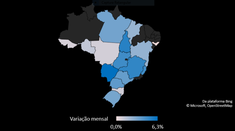Figura 1. Variação (%) mensal de preços da arroba do boi gordo, por estado.