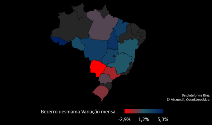 Figura 3. Variação (%) mensal de preços do bezerro de desmama, por estado.