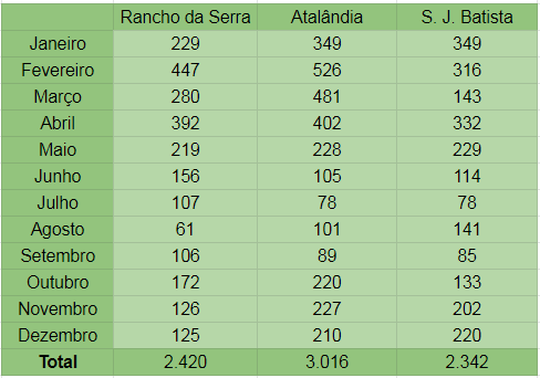 Pluviometria de três propriedades assistidas pela ViaVerde no município de Oriximiná – PA, em milímetros.