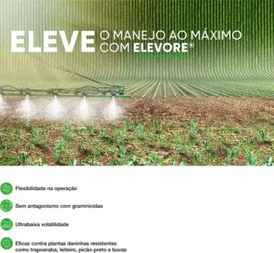Elevore® é um herbicida sistêmico para uso em dessecação pré-plantio da soja. Conta com a força da tecnologia Arylex® active, autoridade em buvas, contribuindo para novas opções de manejo, inclusive em plantas daninhas de difícil controle.