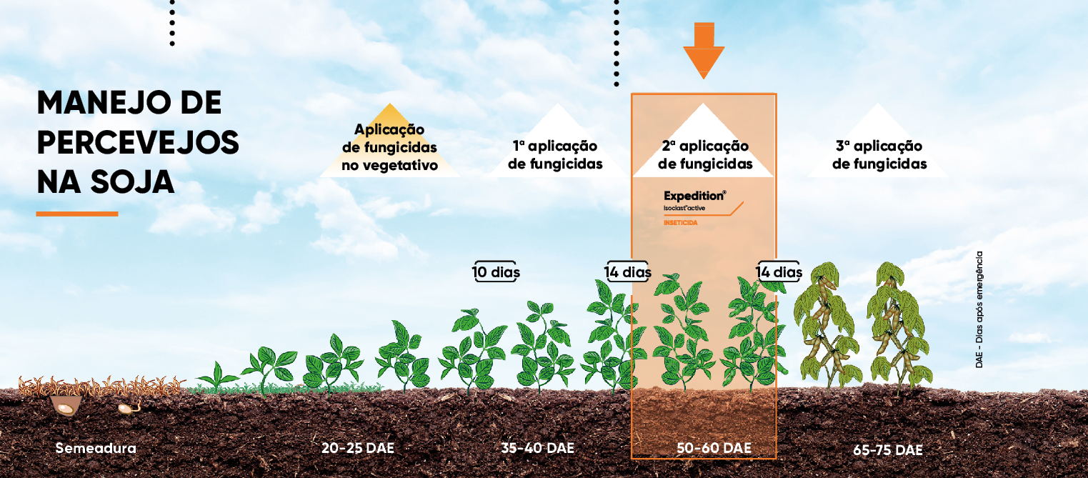 Expedition® é um inseticida que age contra percevejos adultos e possui excelente performance em ninfas devido à inovadora molécula Isoclast™ active. Novo grupo químico das sulfoxaminas, não oferece resistência cruzada aos neonicotinoides, possui flexibilidade de aplicação aérea e terrestre e é uma importante ferramenta para o manejo de resistência.