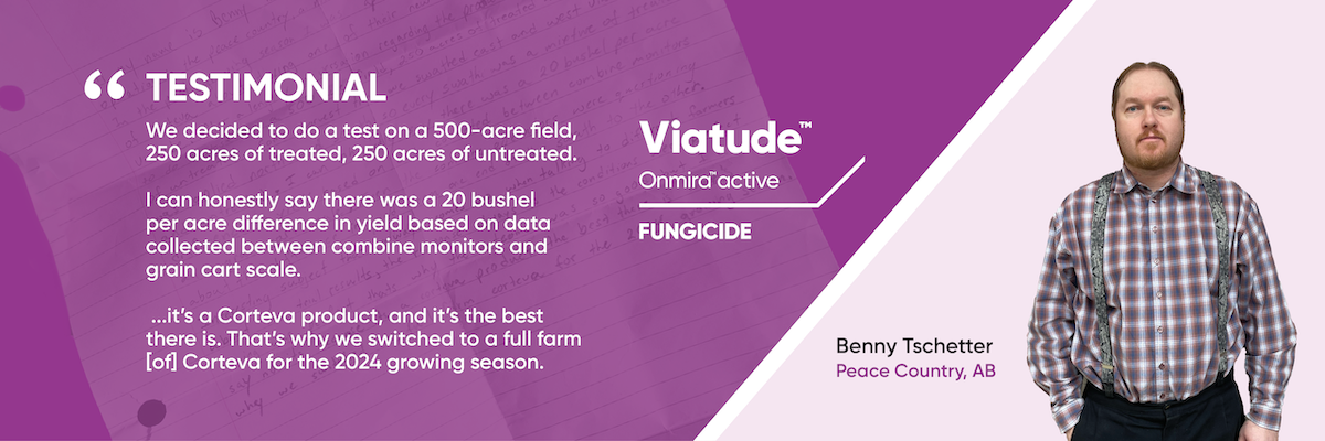 "We decided to do a test on a 500-acre field, 250 acres of treated, 250 acres of untreated. I can honestly say that there was a 20 bushel per acre difference in yield based on data collected between combine monitors and grain cart scale... it's a Corteva product, and it's the best there is. That's why we switched to a full farm [of] Corteva for the 2024 growing season."