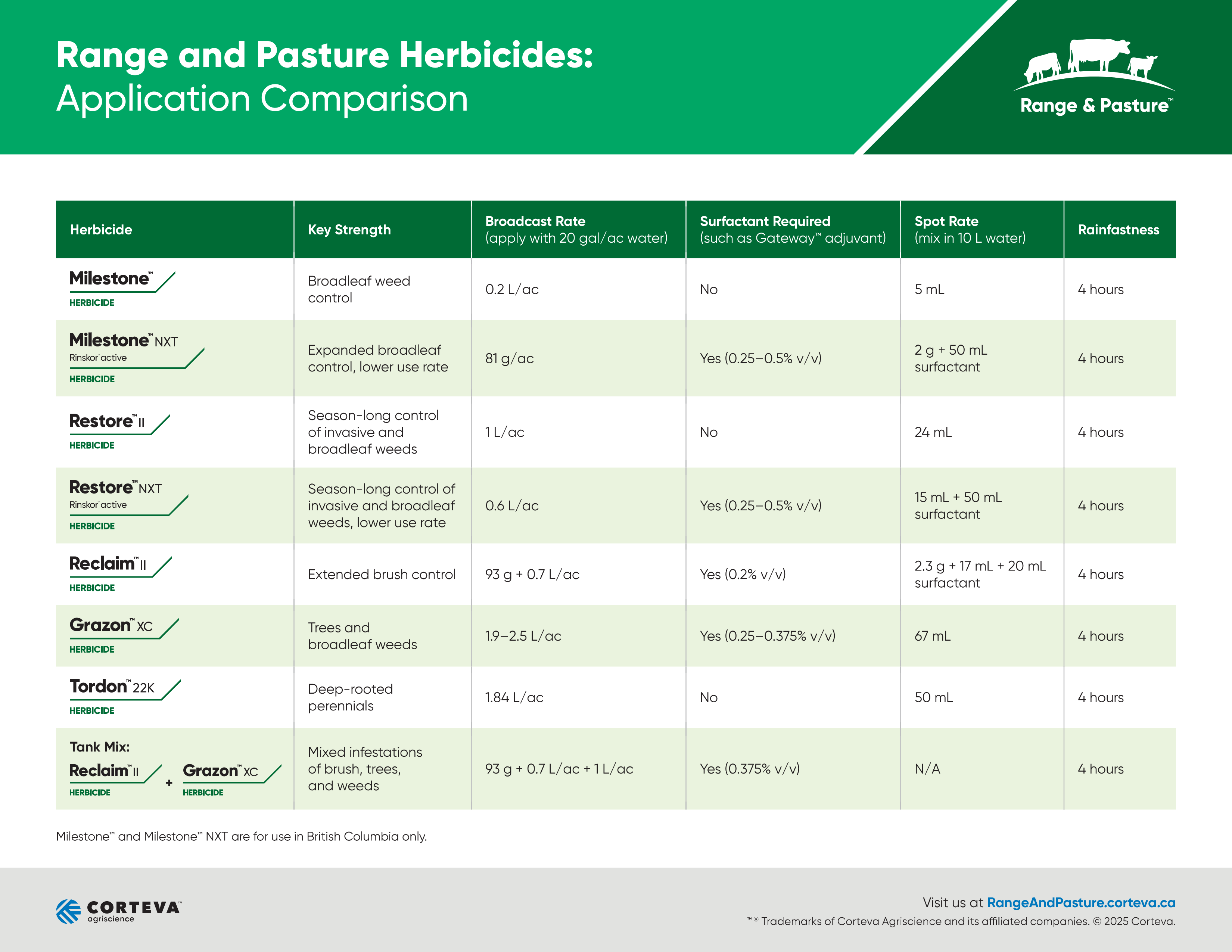 To reduce weed, brush and tree encroachment on your permanent pasture, Corteva Agriscience’s Range & Pasture products offer a long-term solution with lasting results to help you grow more grass and improve the health and sustainability of your land.