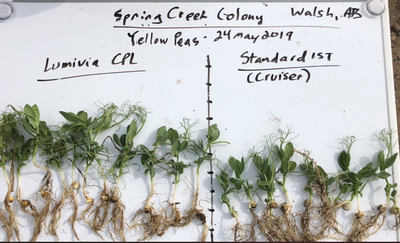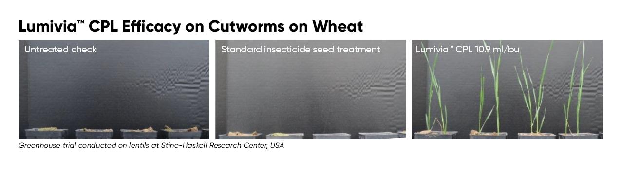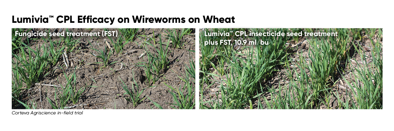 Timely scouting is often difficult during seeding season and over the top insecticide sprays can be ineffective or unavailable. The most effective option for control is a seed treatment like Lumivia™ CPL insecticide seed treatment from Corteva Agriscience. Lumivia CPL insecticide seed treatment provides outstanding early-season protection against wireworm, cutworm, and pea leaf weevil and offers a favourable environmental profile. With a unique mode of action, it works quickly to stop insect feeding and is the only seed treatment available that controls cutworms. Lumivia CPL is proven to maximize early season seedling stand establishment, increase plant count, maximize yield, and manage risk from insects.