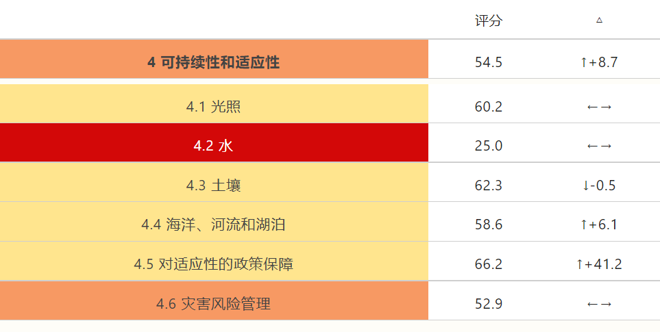 但同时,值得关注的是,报告指出,中国在“可持续发展和适应性”指标中的得分尚有长足进步空间,在全球和亚太地区的排名分别为第55位和第7位。其中,水资源这一指标的得分已位于“非常弱”的区间,这意味着由于中国的气候和地理位置,农业生产受到干旱和洪水影响的风险很高。因此,加大灌溉基础设施建设的投入、提高对自然资源特别是水系统的保护、以及利用智能化设施更好地协调气候灾害风险管理等领域是未来亟待提升的方向。