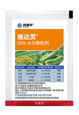 施达灵®为新型化学杀虫剂劲维华™(乙基多杀菌素),作用于昆虫神经系统,乙基多杀菌素 具有胃毒和触杀作用,可用于防治多种作物上的鳞翅目害虫和蓟马等。施达灵®已经进入 “绿色食品农药使用准则”目录,为绿色食品生产资料。