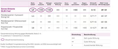 Die EuroBlight-Einstufung bewertet die Wirksamkeit von Fungiziden zur Bekämpfung von Phytophthora infestans. Die Bewertungen basieren auf Feldversuchen und der praktischen Erfahrung mit den Produkten.
