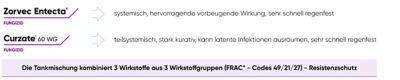 Zorvec Entecta sollte nie in Kurativsituationen gegen bereits vorhandenen Befall eingesetzt werden! Nutzen Sie dafür bewährte Stoppspritzungen mit Curzate 60 WG und einem sporenabtötendem Partnerfungizid (Gachinko®, Ranman® Top, Shirlan®).
