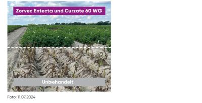 Die Tankmischung aus 0,25 l/ha Zorvec Entecta und 0,2 kg/ha Curzate 60 WG eignet sich ideal zum Spritzstart. Zorvec Entecta hat eine hervorragende vorbeugende Wirkung, während Curzate 60 WG stark kurativ wirkt und eventuelle latente Infektionen ausräumen kann.