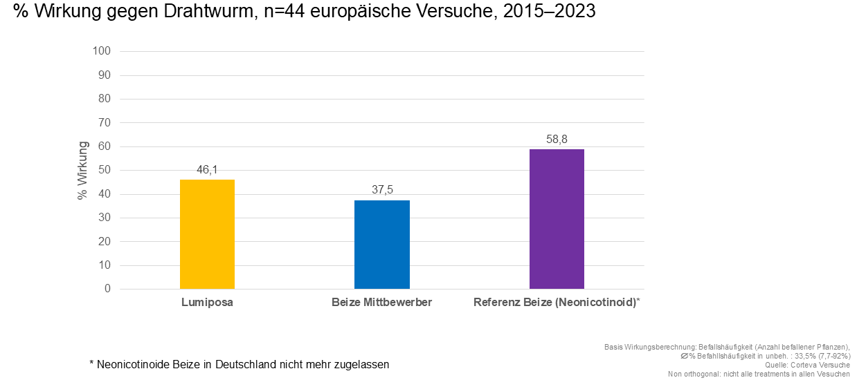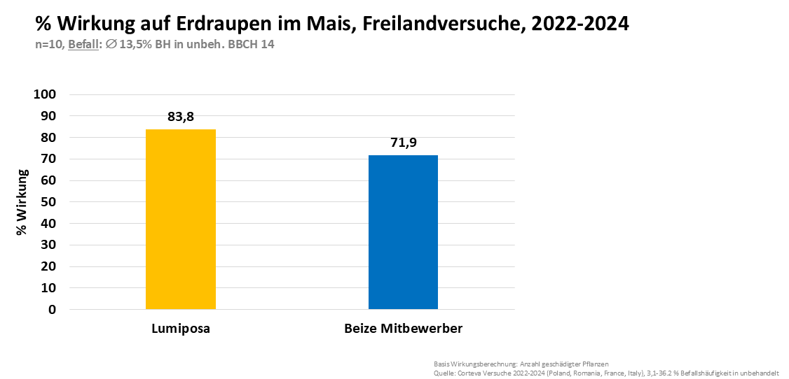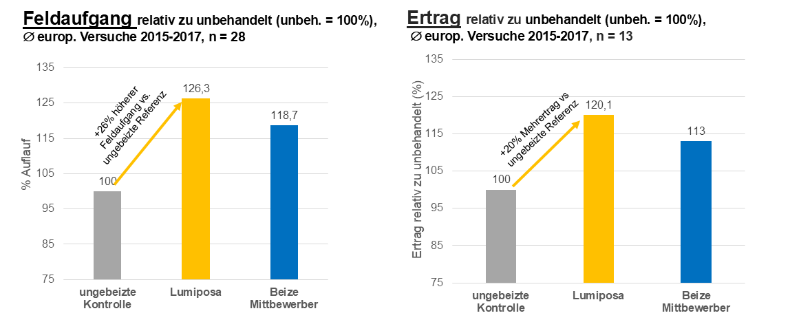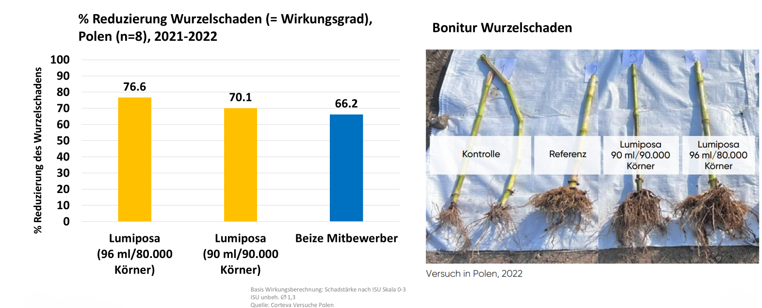 Lumiposa™ 625 FS ist eine systemische insektizide Saatgutbeize mit dem Wirkstoff Cyantraniliprole. Sie bietet ein breites Wirkungsspektrum gegen verschiedene Schädlinge und reduziert frühe Schäden durch Insektenfraß. Dadurch ermöglicht Lumiposa™ 625 FS den Kulturen einen gesunden Start und sichert frühzeitig hohe Ertragspotenziale ab – für Ihre erfolgreiche Ernte!