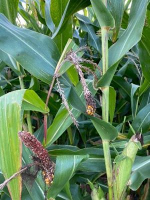 Häufig sind in einem Maisbestand an vereinzelten Pflanzen 1 bis 2 Bestockungstriebe zu finden.
