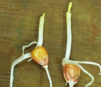 a. Wenn das Korn zur Keimung kaltes Wasser (kälter als 10°C) aufnimmt, kann es zu Kälteschäden kommen (siehe Abbildungen unten).