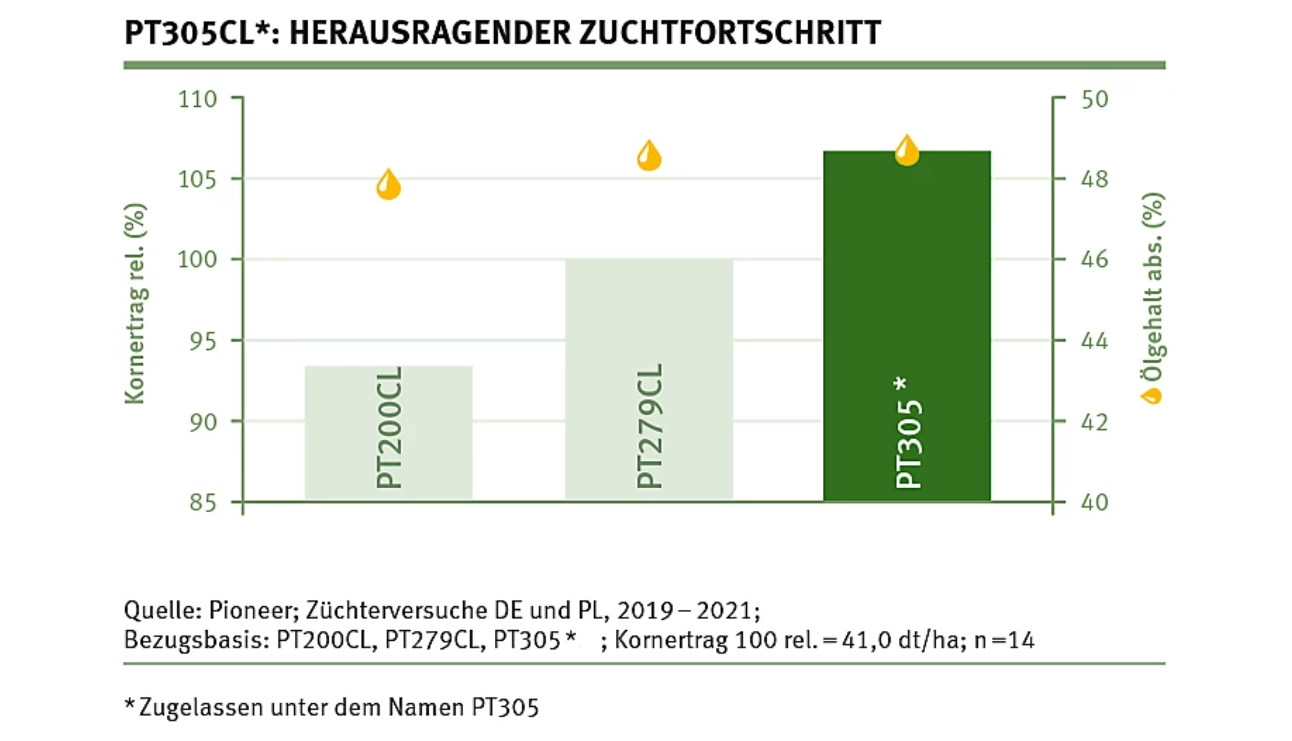 PT305 – die jüngste Hybride setzt neue Maßstäbe im Ertrag! Mit ihrem enormen Ertragszuwachs gehört sie zu den leistungsstärksten Sorten im Segment.