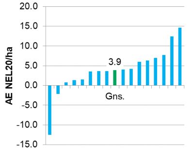 Gyllen med og uden nitrapyrin er nedfældet i det tidlige forår inden majssåningen. I dag kan man med fx ” Seges-Klimaværktøj”- på toppen af merudbyttet - yderligere beregne, at de 500 g/ha nitrapyrin også giver en 40 % CO2-e reduktion i forhold til den tilførte ammoniummængde tilført med gylle og handelsgødning. Denne teoretiske klimaberegning gælder for alle 16 forsøg.