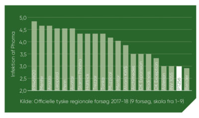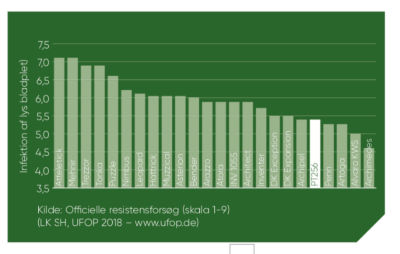 Hvis du ønsker en meget sund afgrøde, bør du overveje vores PT256, især hvis du forventer at så sent. I forsøg uden svampemidler har PT256 klaret sig meget flot, da den både har lav modtagelighed af rodhalsråd (phoma) og lys bladplet (cylindrosporium).