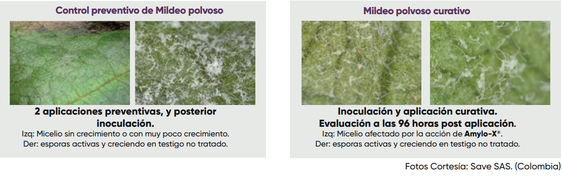 Amylo-X® presenta acción preventiva en aplicaciones foliares sobre hongos fitopatógenos, iniciando las aplicaciones cuando la presión de enfermedad es baja, y las condiciones son conducentes para el desarrollo de la enfermedad. Tiene múltiples mecanismos de acción, por lo que es una herramienta ideal para programas de manejo de enfermedades en campo. Una vez sobre el follaje o raíces, altera la estructura de la membrana celular del hongo patógeno.