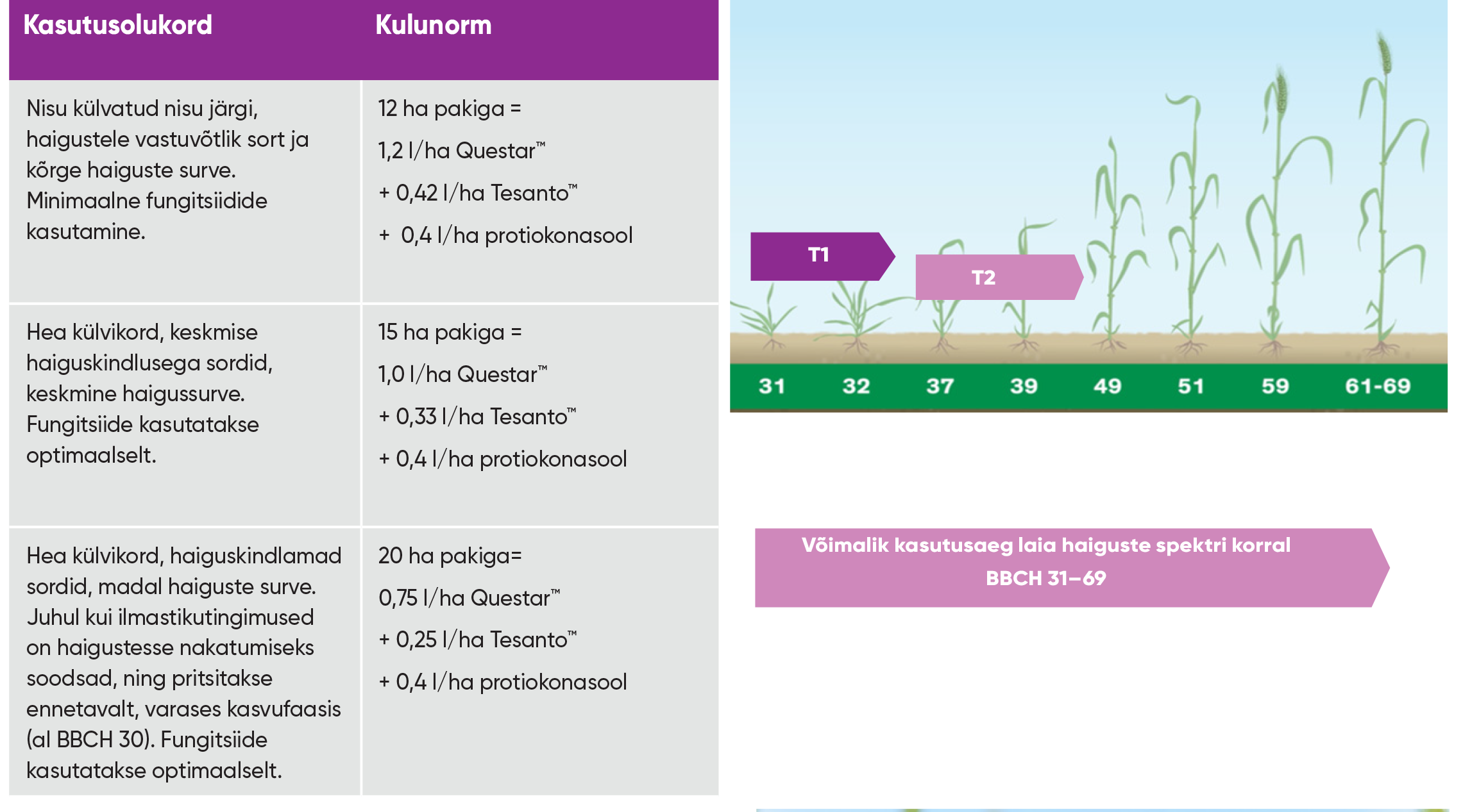 Questar™ ja Tesanto™ co-pack pakub täielikku ja tugevat lahendust teraviljahaiguste tõrjeks nisul, rukkil ja tritikalel.