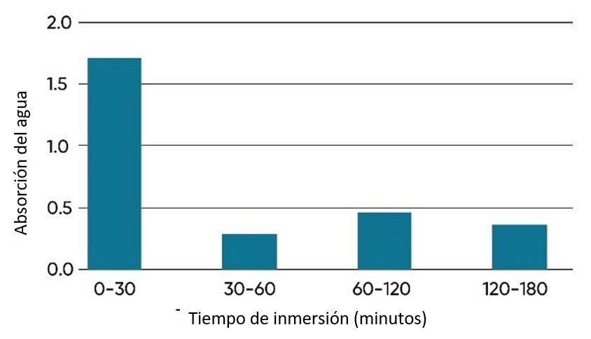 Figura 8. Cantidad de agua absorbida por las semillas de maíz durante las tres primeras horas después de su inmersión en agua a 10ºC.
