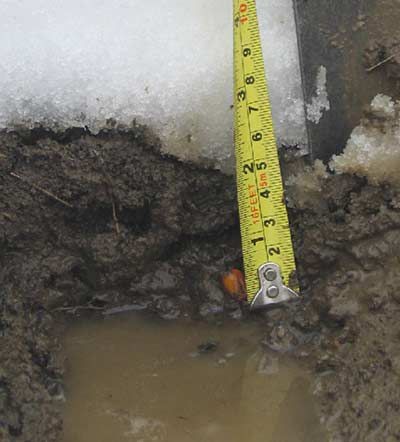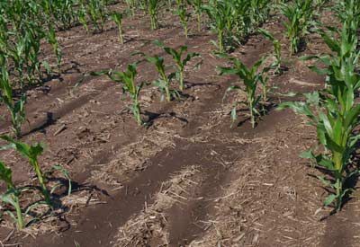 Las bajas temperaturas del suelo después de la siembra redujeron, en gran medida, la nascencia en zonas con estrés cerca de Eau Claire, WI, en 2011.