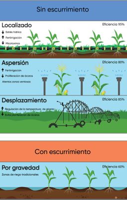 En el cultivo del maíz generalmente se utilizan tres sistemas de riego: por aspersión, localizado y por gravedad.