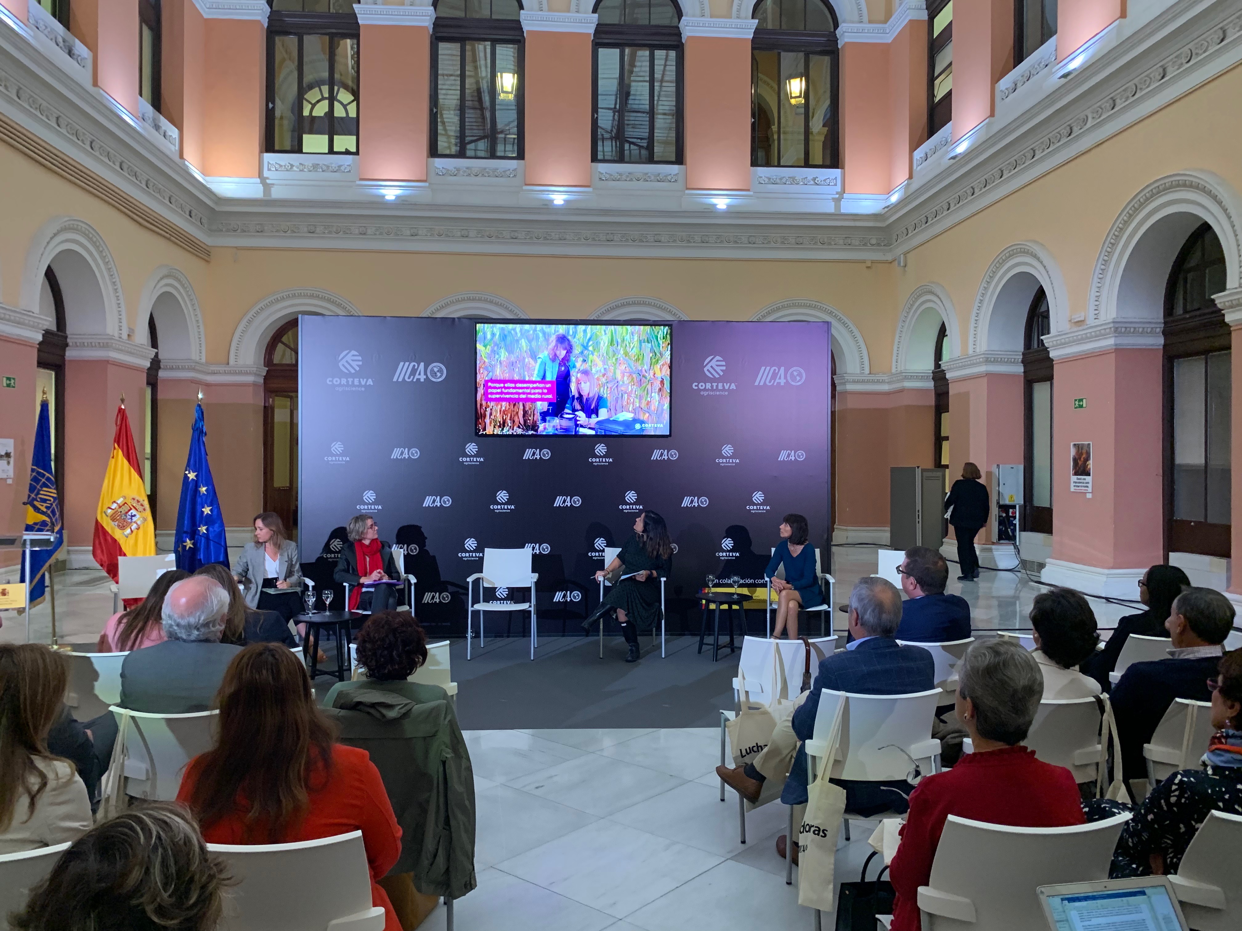 Entre las participantes en el coloquio han estado presentes María Torné, directiva del área de investigación para EMEA de Corteva Agriscience, Soraya Villarroya, Coordinadora para Europa del IICA y Teresa López, presidenta de Fademur, quienes han querido formar parte de esta cita de gran relevancia para el sector.