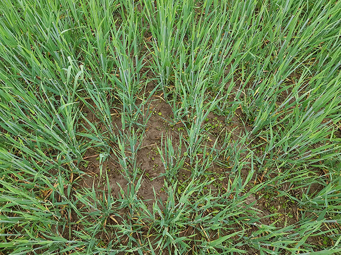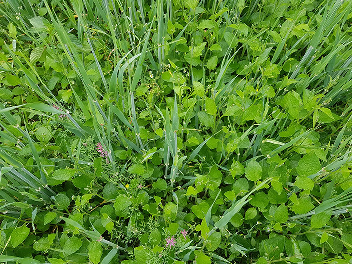 Lohkon erityisongelma oli linnunkaali, myös orvokkia, emäkkiä ja savikka löytyi. Linnunkaalia oli erityisen paljon, eikä sen torjunta ole aina helppoa. Tällä lohkolla Quelex Combo toimi erittäin hyvin näihin hankalasti torjuttaviin rikkakasveihin, kuten alla olevista kuvista käy ilmi. Ensimmäisessä kuvassa on käsittelemätön alue, joka on aivan täynnä linnunkaalia sekä muita rikkakasveja. Toisessa kuvassa on ruiskutettu alue, joka on erittäin puhdas.