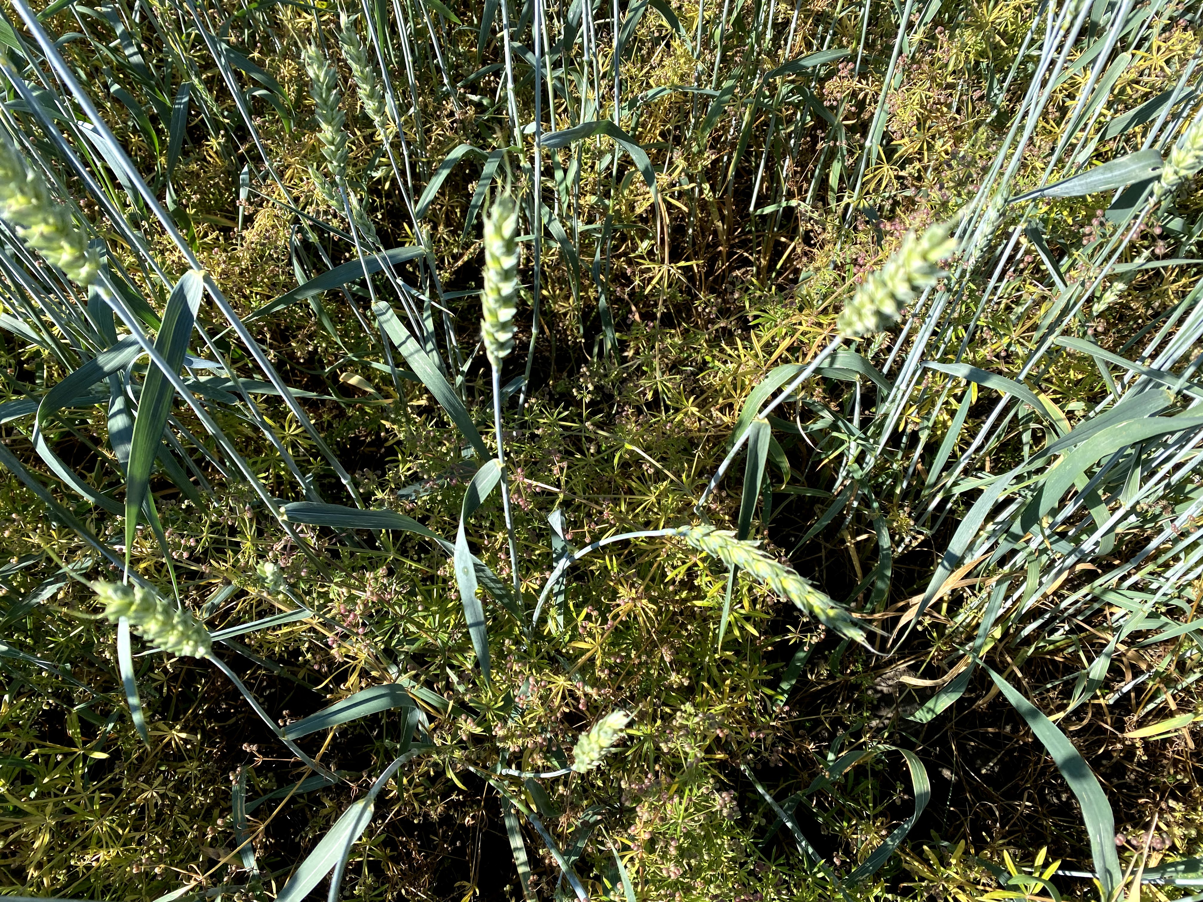 Lohkolla oli ongelmana erityisesti matara, mutta lohkolla esiintyi myös hukkakauraa ja valvattia. Rikkakasvien torjunta-aineeksi valikoitui Rexade 440, jolla saatiin torjuttua tehokkaasti matara sekä hukkakaura ja myös teho valvattiin oli hyvä. Lohkolle jätettiin käsittelemätön alue, jolla kasvoi runsaasti mataraa, sekä siltä löytyi myös reilusti kukkivaa valvattia sekä myös hukkakaura. Muu lohko oli puhdas näistä rikkakasveista ruiskutuksen ansiosta. Kuvat otettu 4.8.2021.