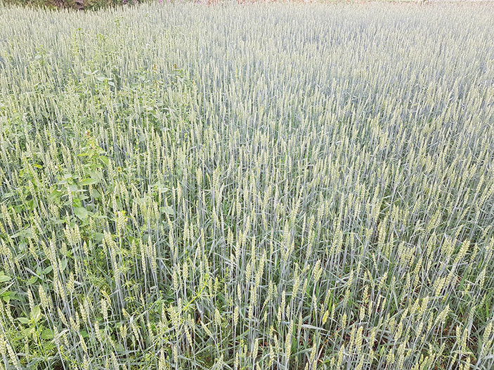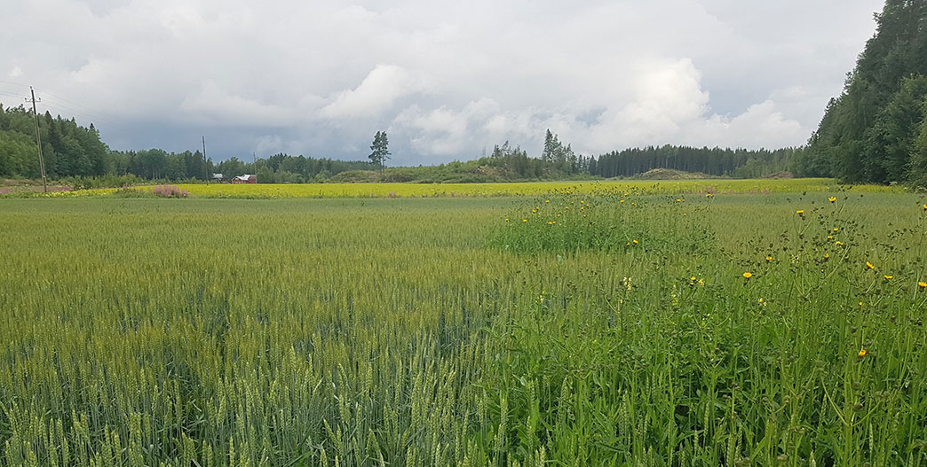 Kuva 2. Toisella lohkolla oli runsaasti pillikettä ja mataraa. Quelex Combo on erittäin tehokas molempiin näihin rikkakasveihin, joten ruiskutettu alue (oikealla) oli täysin puhdas. Vasemmalla käsittelemätön alue.