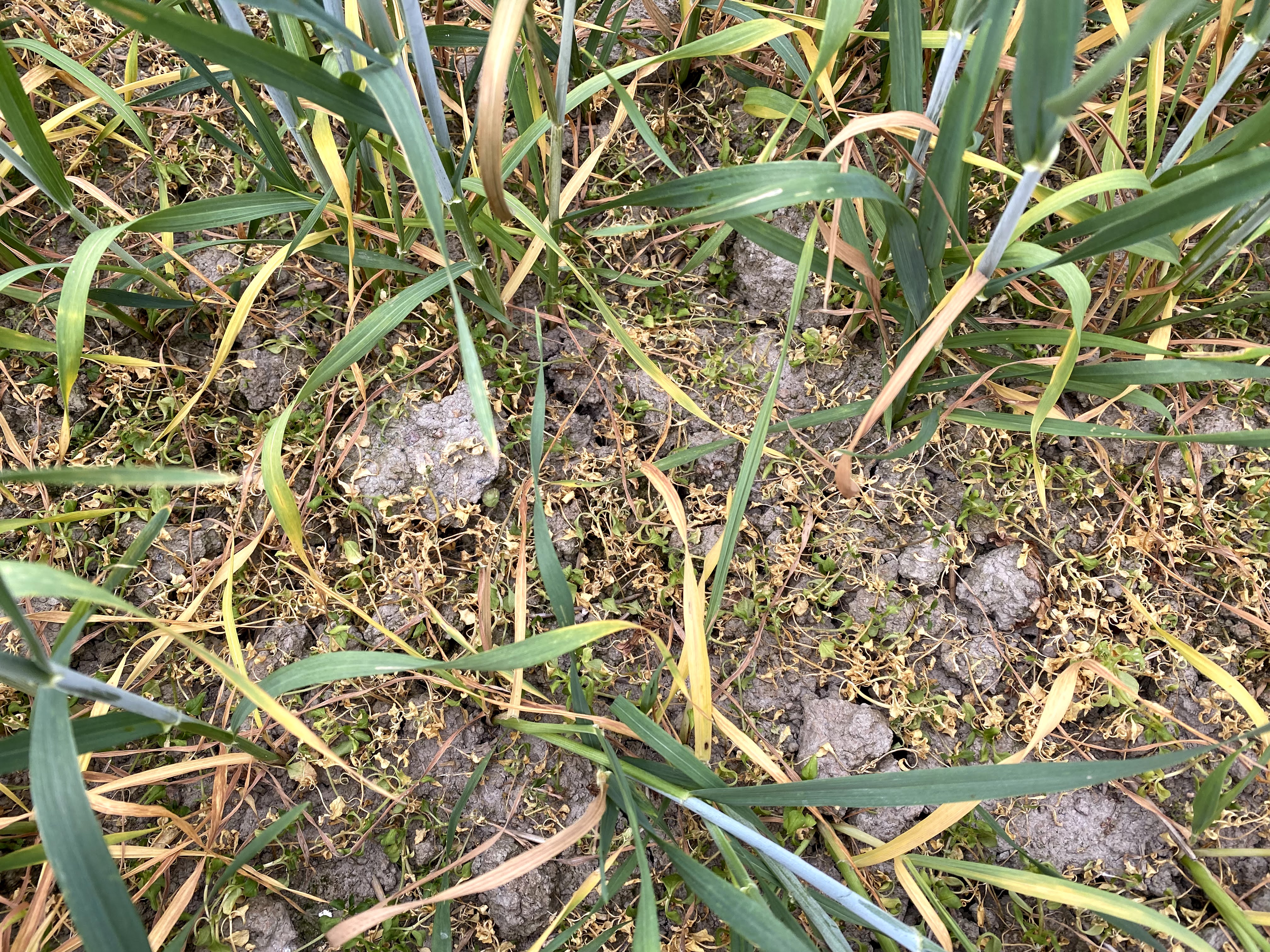 Lohkolla oli ongelmana vesiheinä, jota lähdettiin torjumaan Pixxaro Premium paketilla kevätvehnältä. Torjunta onnistui erinomaisesti, 23.6.2021 vesiheinä oli jo kuivumassa pois.