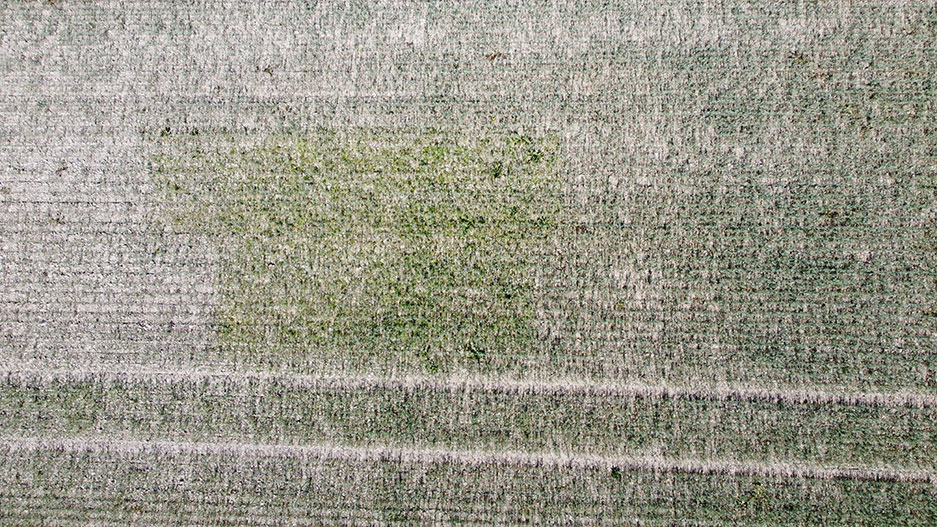 Kuvat 1 ja 2. Ruiskuttamaton alue erottui selvästi ruiskutetusta 12.7.2021