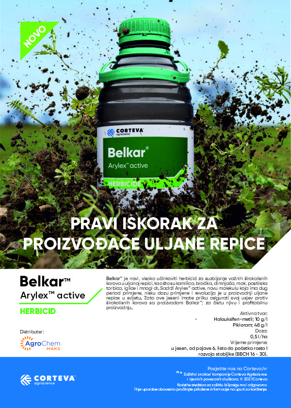 Dosadašnja proizvodnja uglavnom se bazirala na pre-em herbicidima koji su često znali biti fitotoksični ili čak i neučinkoviti zbog nedostatka oborina, a takva varijanta često rezultira smanjenim prinosom te ne isplativosti proizvodnje uljane repice. Tvrtka Corteva Agriscience™ od ove jeseni u svojoj paleti proizvoda ima u ponudi novi herbicid koji rješava sve ekonomski značajne širokolisne korove u proizvodnji svih tipova uljane repice - Belkar™, Arylex™ active.