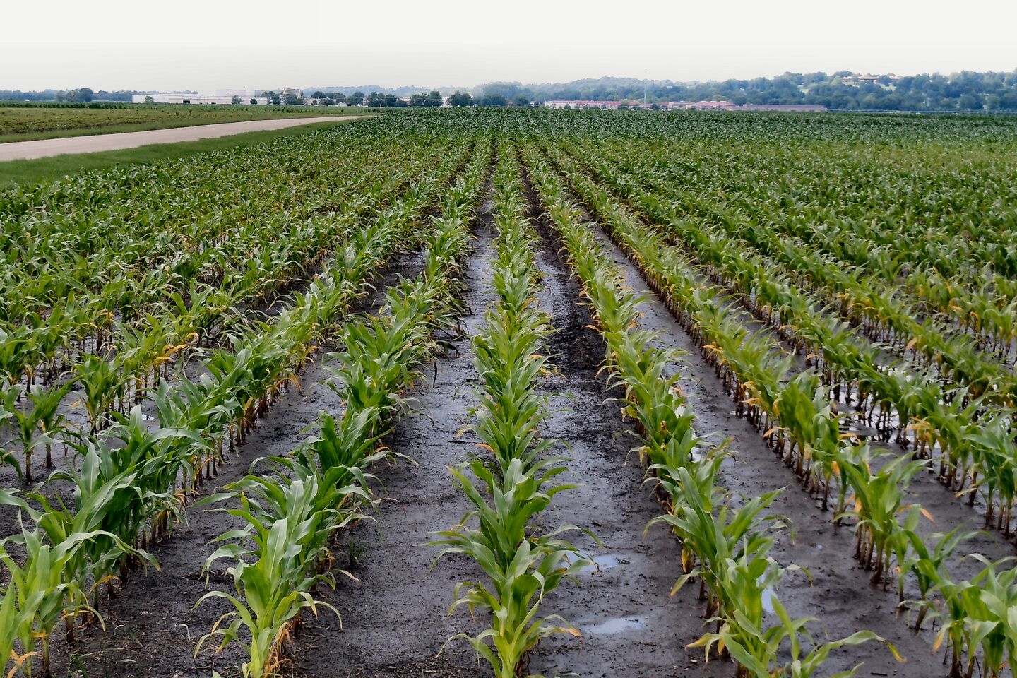2. ábra: Súlyos nitrogénhiányos tünetek jelentek meg ezen a sok csapadék miatt telített területen.
