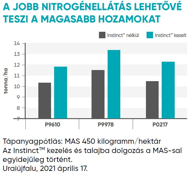 Széleskörű vizsgálatok kimutatták, hogy az Optinyte™ technológia – így az Instinct™ - képes akár 28%-kal emelni a talaj nitrogéntartását, jelentősen segítve a kultúrnövény jobb táplálását, a gazdálkodás eredményességét.