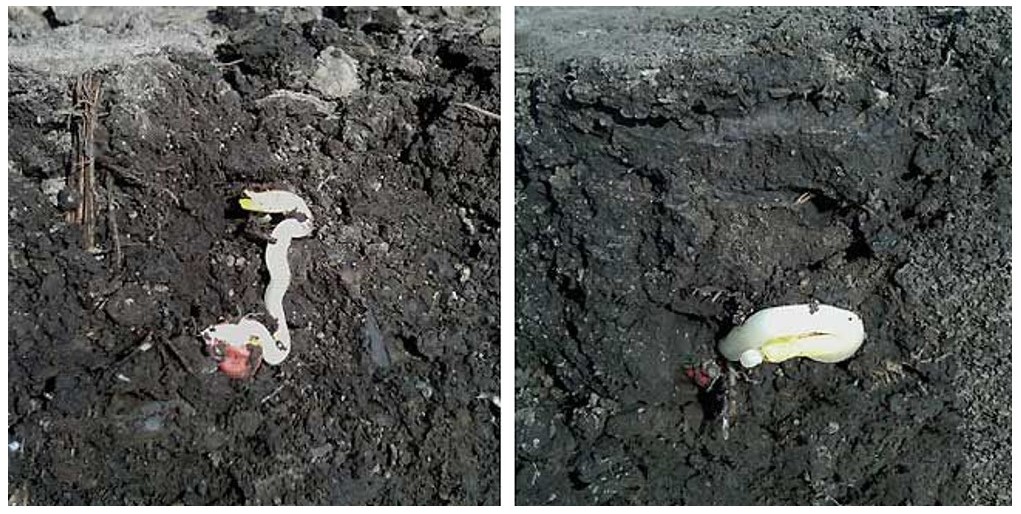 A korai vetés gyakran arra kényszeríti a vetőmagokat, hogy hideg vízzel hidratáljanak, ezáltal közvetlen fizikai károsodást okozva. Ha a száraz vetőmag hideg vizet szív magába egy hideg eső vagy olvadó hó következtében, az fagyási sérülést okozhat. A mag sejtmembránjai alacsony hőmérsékleten folyadék hiányban szenvedhetnek. Ilyen körülmények között a hidratációs folyamat a membránok felszakadásához vezethet. Ezután a sejtek tartalma átszivárog ezen a sérülésen és táplálékforrást biztosít a behatoló kórokozóknak. A hideg víz hasonlóan hatással lehet a növényke szerkezetére, amikor elkezd kikelni. A károsodás mértéke a magelhalástól a komolyabb rendellenességekig is terjedhet (4. ábra).