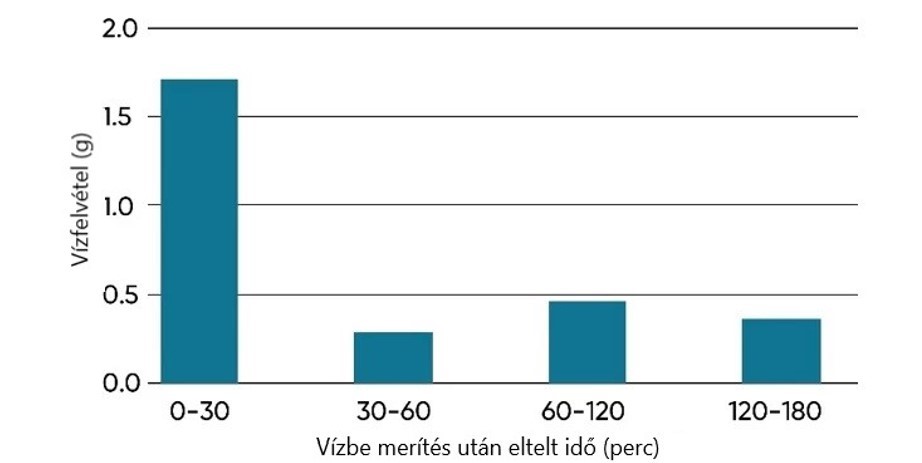 6. ábra: A kukoricamag által felvett víz mennyisége a 10°C-os vízbe merítés utáni első három órában.