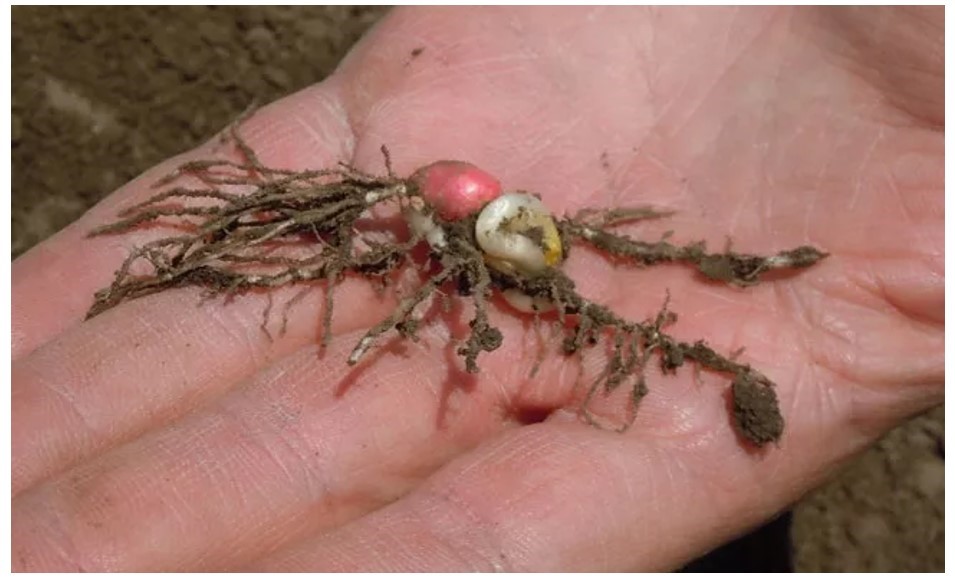 4. ábra. Rendellenes mezokotil és rügyhüvely fejlődése hidegstressz következtében egy korai vetésű táblában.
