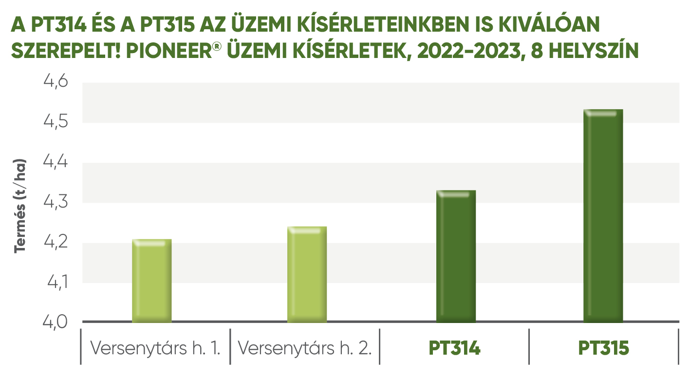 Próbálja ki Ön is saját területén, és győződjön meg a korai tenyészidejű PT314 és a közép-késői tenyészidejű PT315 Pioneer® hibridek kiváló tulajdonságairól!